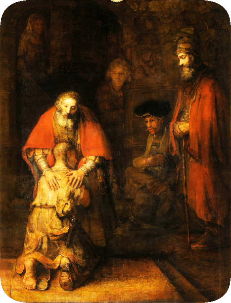 The painting known as "The Return of the Prodigal Son" is widely regarded as a late work by Rembrandt created near the end of his life between 1661 and 1669. Museum records describe the composition as emphasizing forgiveness and reconciliation through the dramatic reunion of a father and son. Scholars note the painting's deep shadows and restrained palette as characteristic of Rembrandt's mature style. Sources: (Rijksmuseum, Hermitage Museum, Metropolitan Museum of Art)