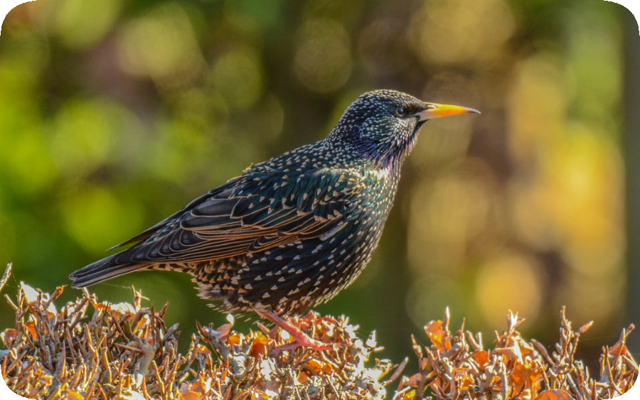 (Both European Starling and Common Starling are Correct). The European starling, also known as the Common starling, is a medium sized passerine bird native to Europe and western Asia. Records from the United States Geological Survey document its introduction to North America in the late nineteenth century, after which it spread rapidly across the continent. Wildlife agencies describe the species as highly adaptable, often forming large flocks and competing with native cavity nesting birds for resources. Sources: (United States Geological Survey, United States Fish And Wildlife Service, Cornell Lab Of Ornithology)