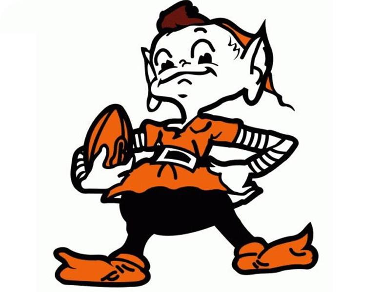 The Cleveland Browns used a leaping brown and white elf mascot during the period from 1959 to 1969, a figure commonly referred to as Brownie the Elf. Team archives describe the character as a representation of agility and craftsmanship that linked early franchise identity with regional folklore influences. Historical records note that the logo appeared on media guides and promotional materials even though the team continued to use a plain orange helmet on the field. Sources: (Pro Football Hall of Fame Archives, Cleveland Browns Team History Department, Encyclopedia Britannica)